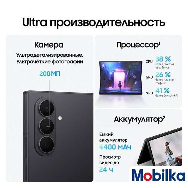 | Отличия от предыдущего поколения | ✅ В Galaxy Z Fold7 реализовано несколько инноваций, которые отличают его не только от Galaxy Z Fold6, но и от любого другого складного смартфона на рынке. Во-первых, широкие дисплеи как внутри, так и снаружи. Диагональ внешнего экрана теперь составляет 6.5 дюйма, а основной экран имеет впечатляющую диагональ 8 дюймов с более широким соотношением сторон, что обеспечивает более плавную работу в многозадачном режиме.✅ И хотя дисплеи стали больше, сам смартфон значительно уменьшился в размерах и стал более портативным, чем все предыдущие Galaxy Z Fold, как в сложенном, так и в раскрытом виде. В раскрытом виде его толщина составляет 4.2 мм, а в сложенном — 8.9 мм, что делает его примерно на 25% тоньше Galaxy Z Fold6.✅ В сложенном состоянии экран Galaxy Z Fold7 имеет соотношение сторон 21:9, аналогичное соотношению сторон у премиальных смартфонов моноблокового типа. Такое улучшенное соотношение сторон обеспечивает удобство и естественность набора текста, а также повышает производительность. |